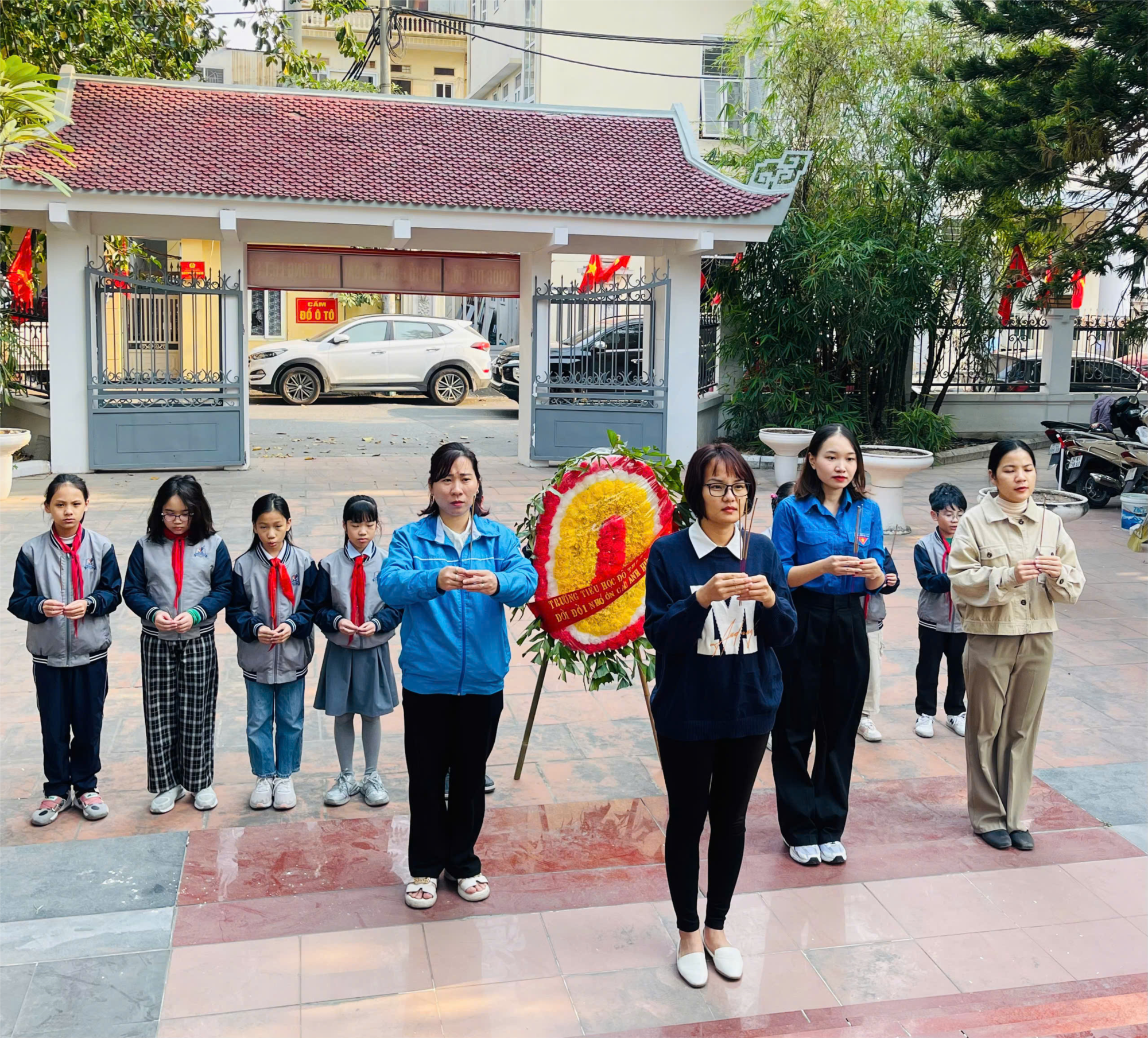 Cô giáo Đỗ Lan Trang – Phó hiệu trưởng, cô giáo Vũ Mai Trâm – Bí thư chi đoàn, cô giáo Trần Phương Oanh - Giáo viên Tổng phụ trách Đội thay mặt thầy vào trò nhà trường dâng nén nhang thơm lên các anh hùng liệt sĩ.