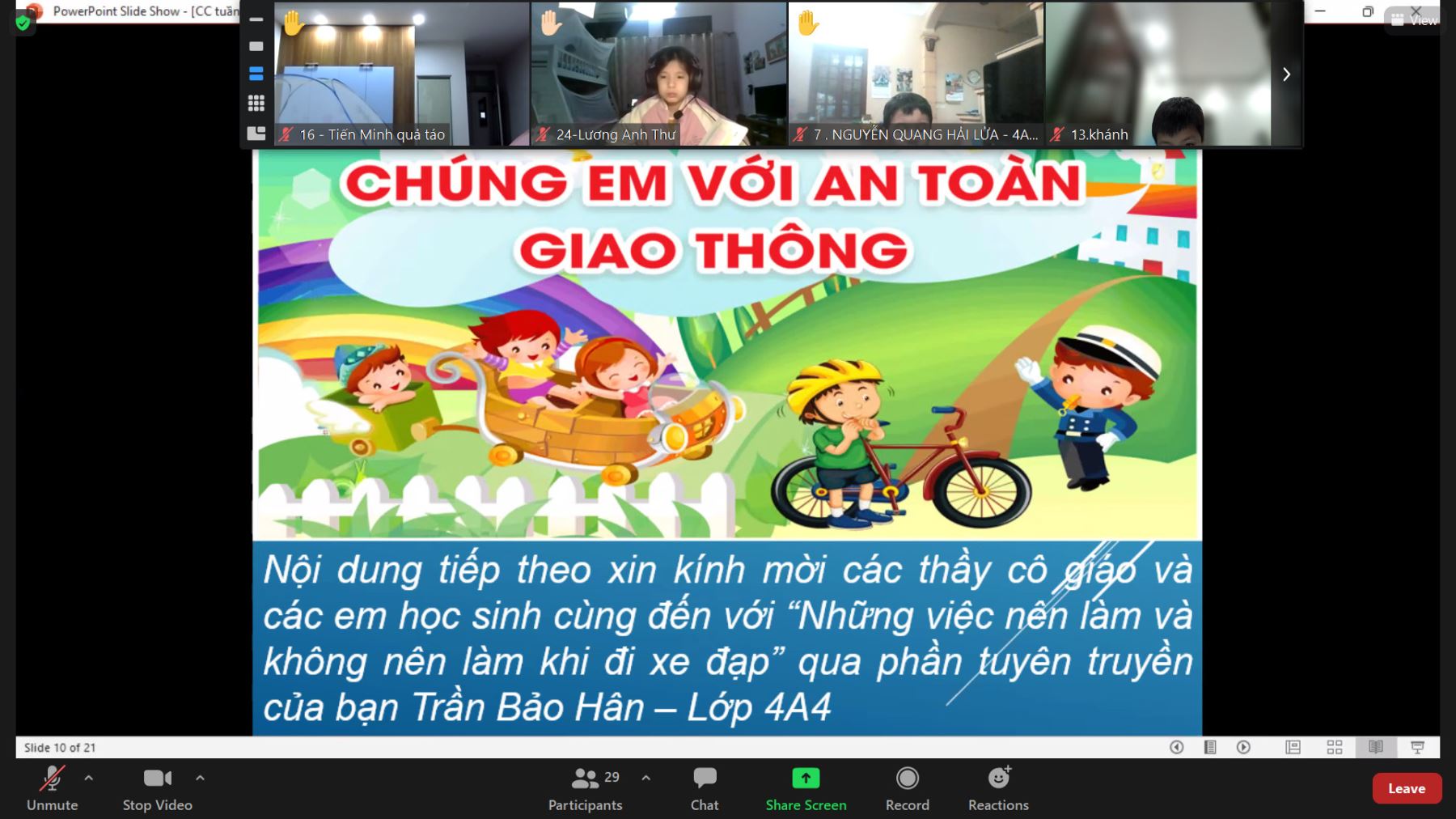 Trong chuyên mục ý nghĩa lần này, bạn Trần Bảo Hân – học sinh lớp 4A4 - đại diện đội tuyên truyền măng non trường TH Đô thị Sài Đồng gửi đến các thầy cô giáo và các bạn học sinh “Những việc nên làm và không nên làm khi đi xe đạp” dưới hình thức trực tuyến.