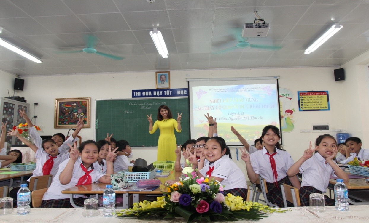 Hình ảnh: cô giáo Thu An cùng các bạn học sinh