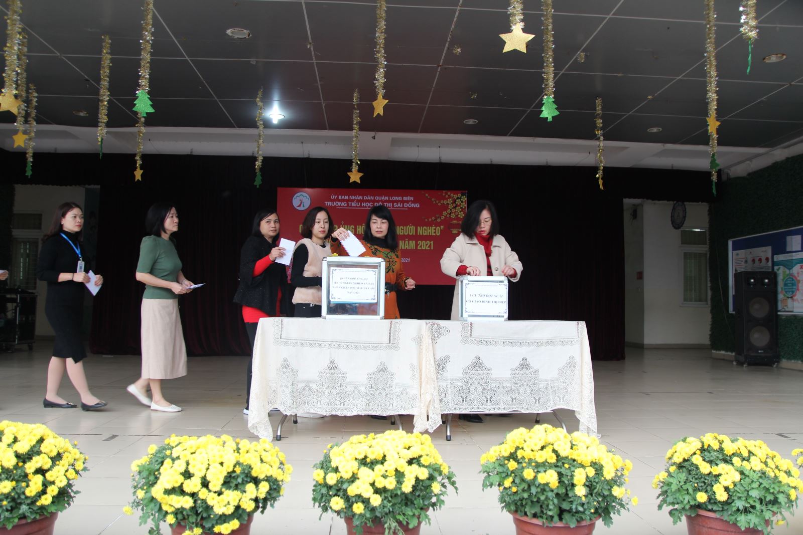 Hình ảnh quyên góp quỹ nhân đạo và cứu trợ đột xuất tại sân khấu