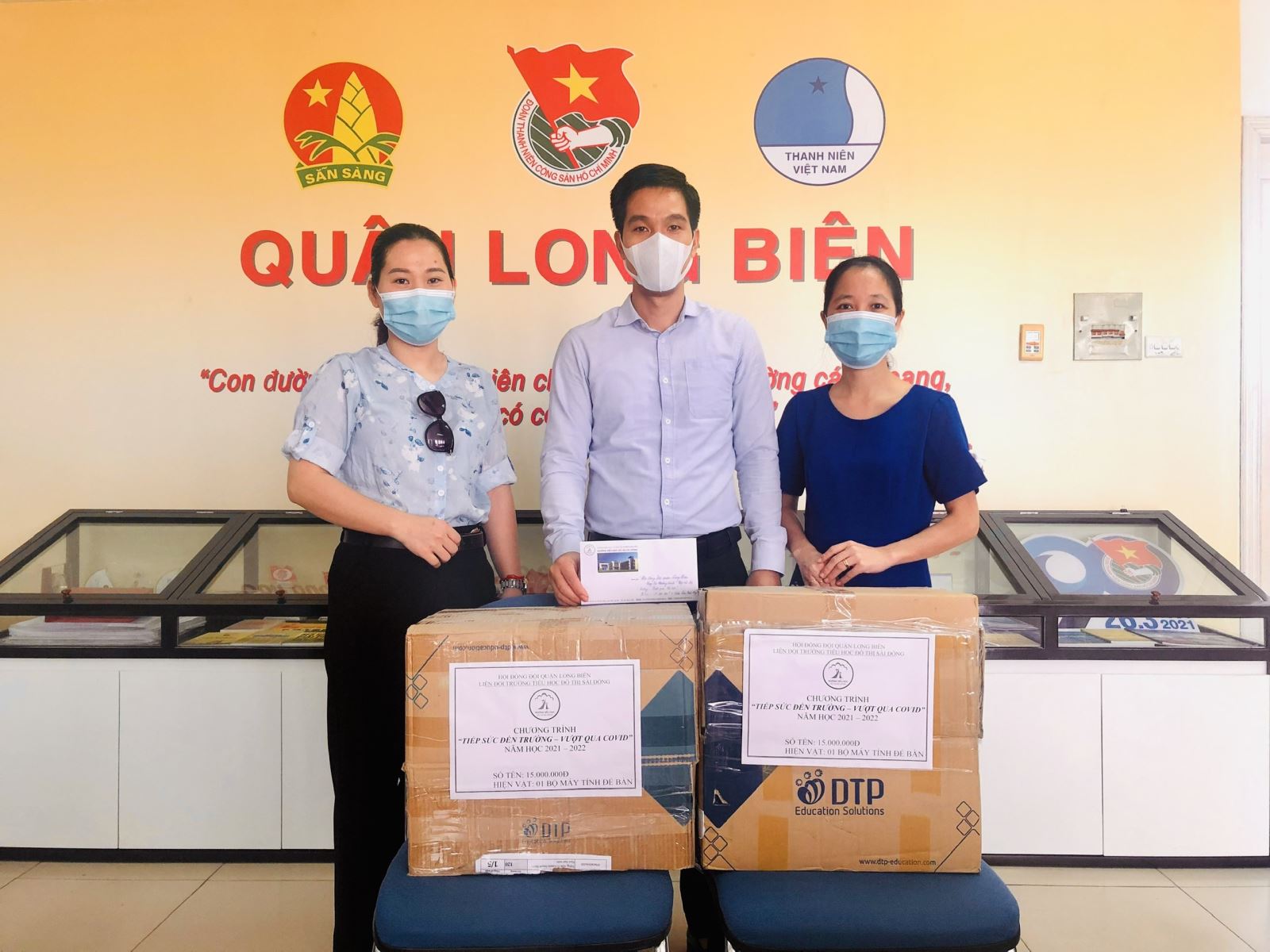 Hình ảnh: Đại diện trường TH Đô thị Sài Đồng trao quà ủng hộ cho đại diện Hội đồng đội quận Long Biên