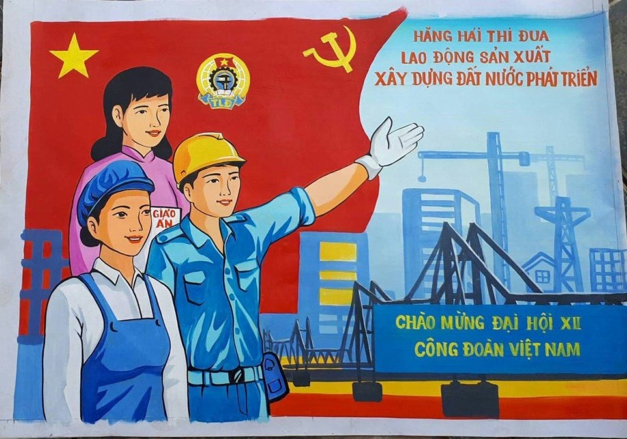 Với ý tưởng sáng tạo cùng nhiệt huyết của tuổi trẻ Việt Nam, tác phẩm tranh dự thi của đoàn viên trẻ Nguyễn Thu An – giáo viên dạy Mỹ thuật đã vinh dự được lựa chọn để tham dự cuộc thi do Liên đoàn lao động ngành phát động.