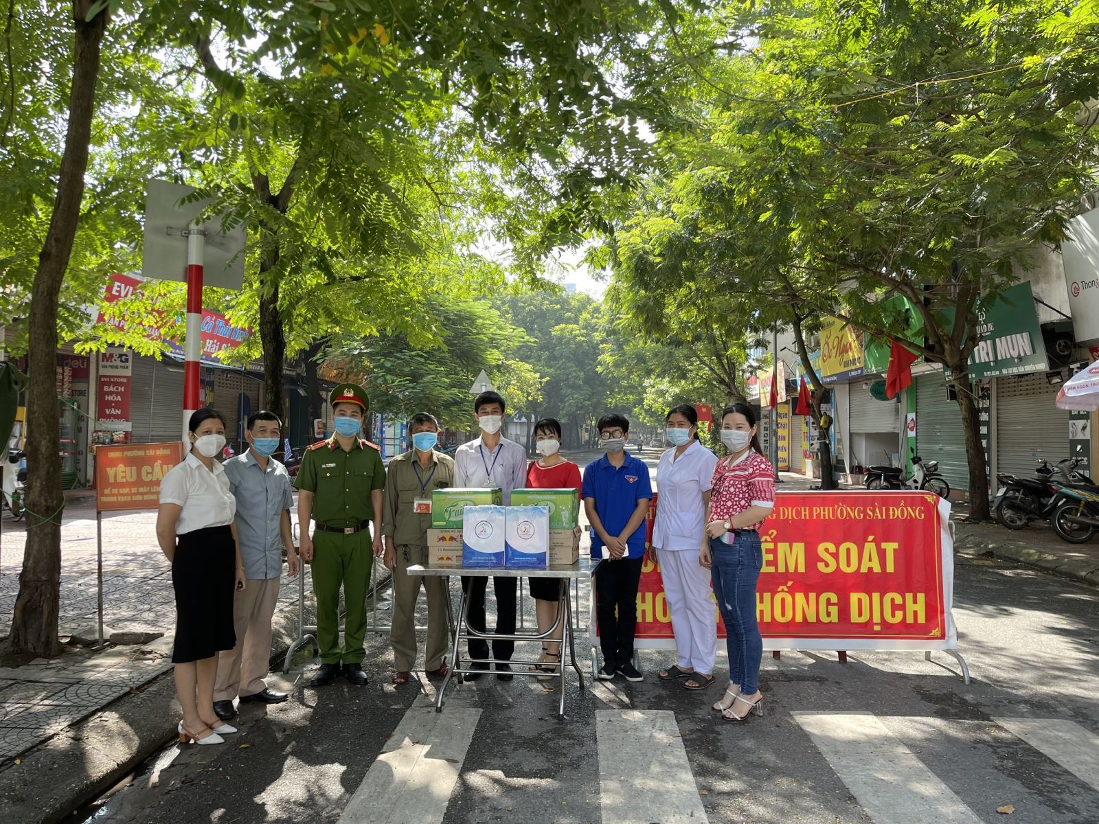 Hình ảnh: Tặng quà Ban chỉ đạo phường Sài Đồng tại chốt số 42 phường Sài Đồng