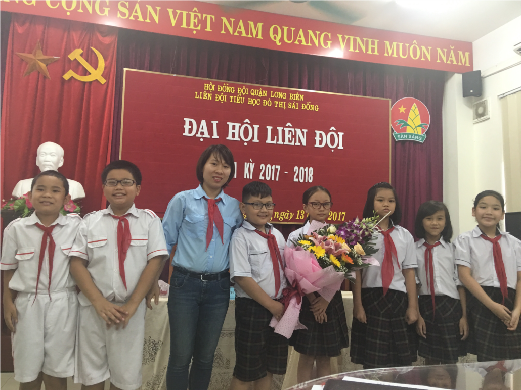 Đến dự với Đại hội có Cô Hà Thị Diệu Thúy – Phó Hiệu trưởng nhà trường; Cô Trần Phương Oanh – Giáo viên Tổng phụ trách Đội cùng đông đủ các thầy cô giáo trách khối 4, 5 và 30 đội viên tiêu biểu đại diện Đội viên, Nhi đồng trong toàn Liên đội cũng có mặt đầy đủ.