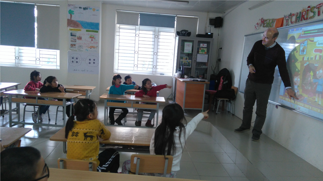 Thầy Gregory vui tính và các bạn nhỏ nhóm lớp 3A1 đã cùng nhau say mê học tập với các hoạt động thú vị xoay quanh chủ đề Giáng sinh như trả lời câu hỏi, hát đồng ca hay chơi trò tìm đồ vật.