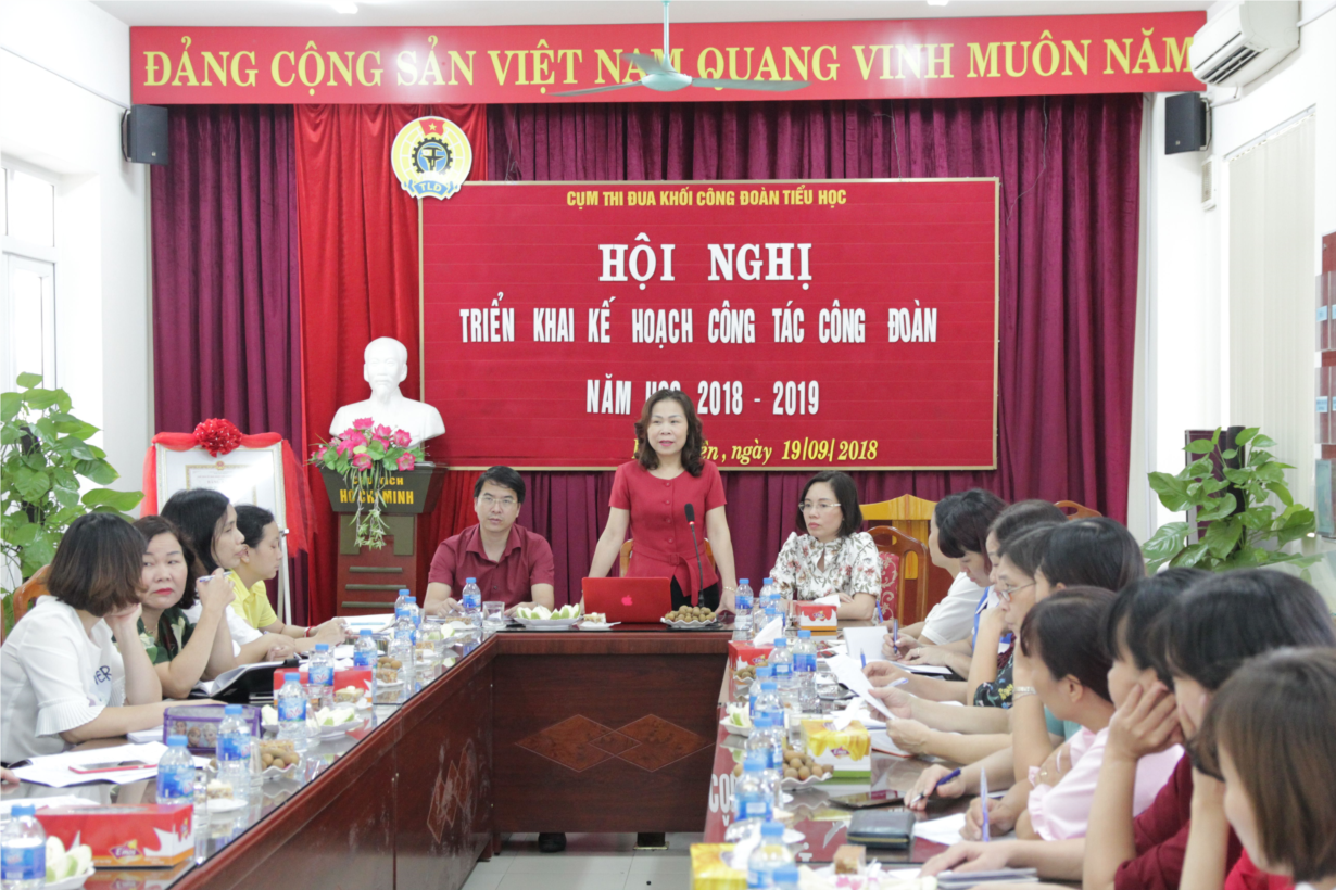 Hội nghị đã được nghe đồng chí Phan Thị Thu Hằng chủ tịch liên đoàn lao động quận Long Biên triển khai các hoạt động công đoàn trong năm học 2018 – 2019 và bàn các nội dung hoạt động của cụm công đoàn tiểu học.