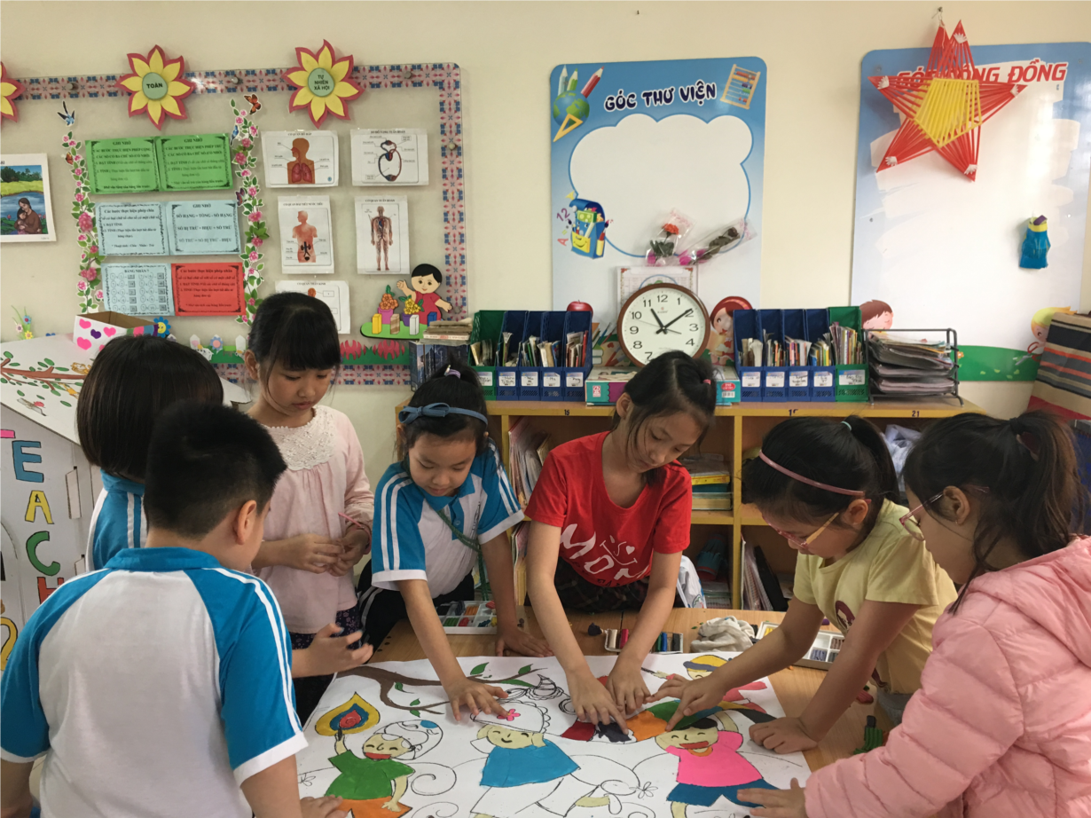 Trong suốt hai ngày, bằng sự nỗ lực của các em học sinh khối 3, tác phẩm “Vui đón xuân sang” đã hoàn thành, được đóng khung cẩn thận và đem đi dự thi “Sắc xuân 2018” của trường Tiểu học Đô thị Sài Đồng.