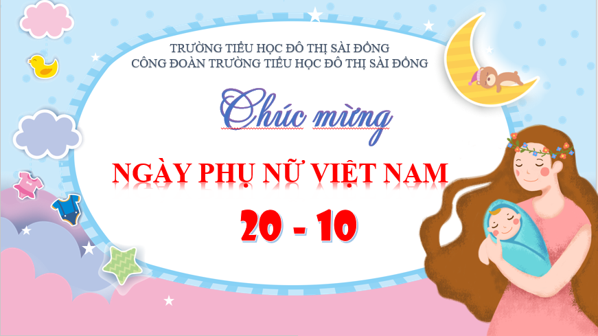 Nhà trường và Ban chấp hành Công đoàn trường tiểu học Đô thị Sài Đồng phối hợp cùng Ban thiếu nhi nhà trường tổ chức kỉ niệm 91 năm Ngày thành lập Hội Liên hiệp phụ nữ Việt Nam (20/10/1930 - 20/10/2021) và 11 năm Ngày Phụ nữ Việt Nam.