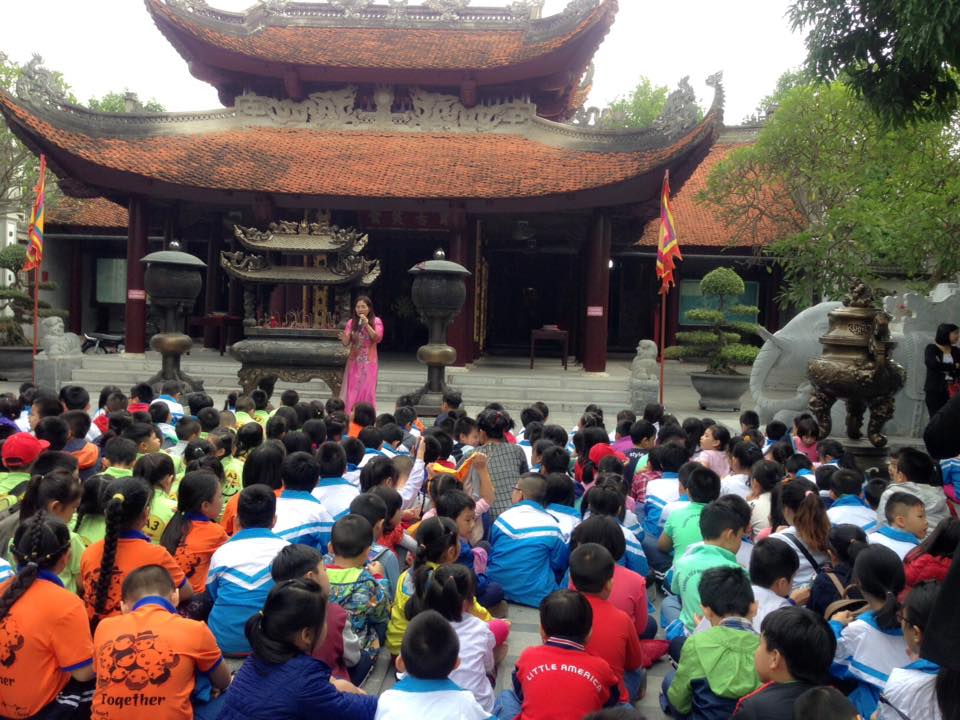 Tại đây, giáo viên và các em học sinh đã dâng nén hương thơm tỏ lòng thành kính tới 8 vị vua nhà Lý. Cùng với đó, đoàn tham quan đã được các cô, bác hướng dẫn viên trong Ban di tích lịch sử của Đền giới thiệu về lịch sử ra đời và ý nghĩa của Đền Đô; cùng tham quan một số di tích, cổ vật trong đình.