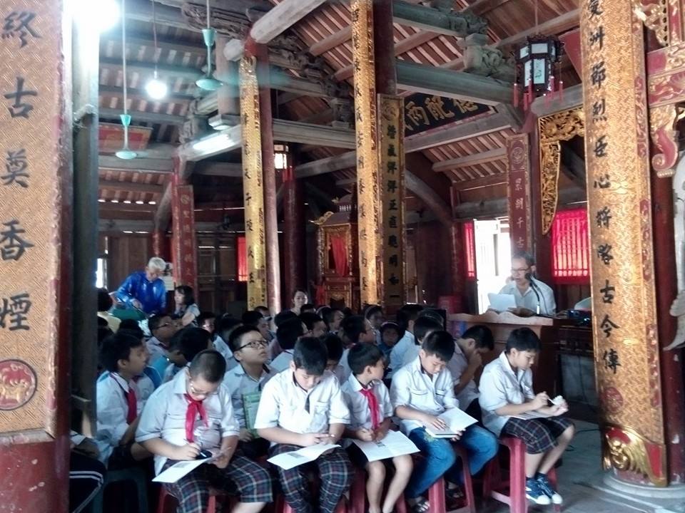 Hình ảnh: Học sinh tìm hiểu về lịch sử ra đời và ý nghĩa của đình Lệ Mật