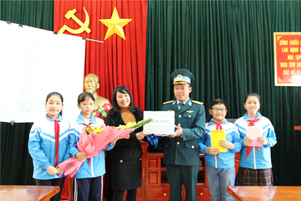 Tại buổi giao lưu, cô giáo Hà Thị Diệu Thuý - Phó hiệu trưởng thay mặt cho tập thể CBGV- NV nhà trường đã gửi đến các chú, các bác Đại đội 71 Trung đoàn 280 bó hoa tươi thắm nhất thay cho lời tri ân tới các anh bộ đội cụ Hồ.