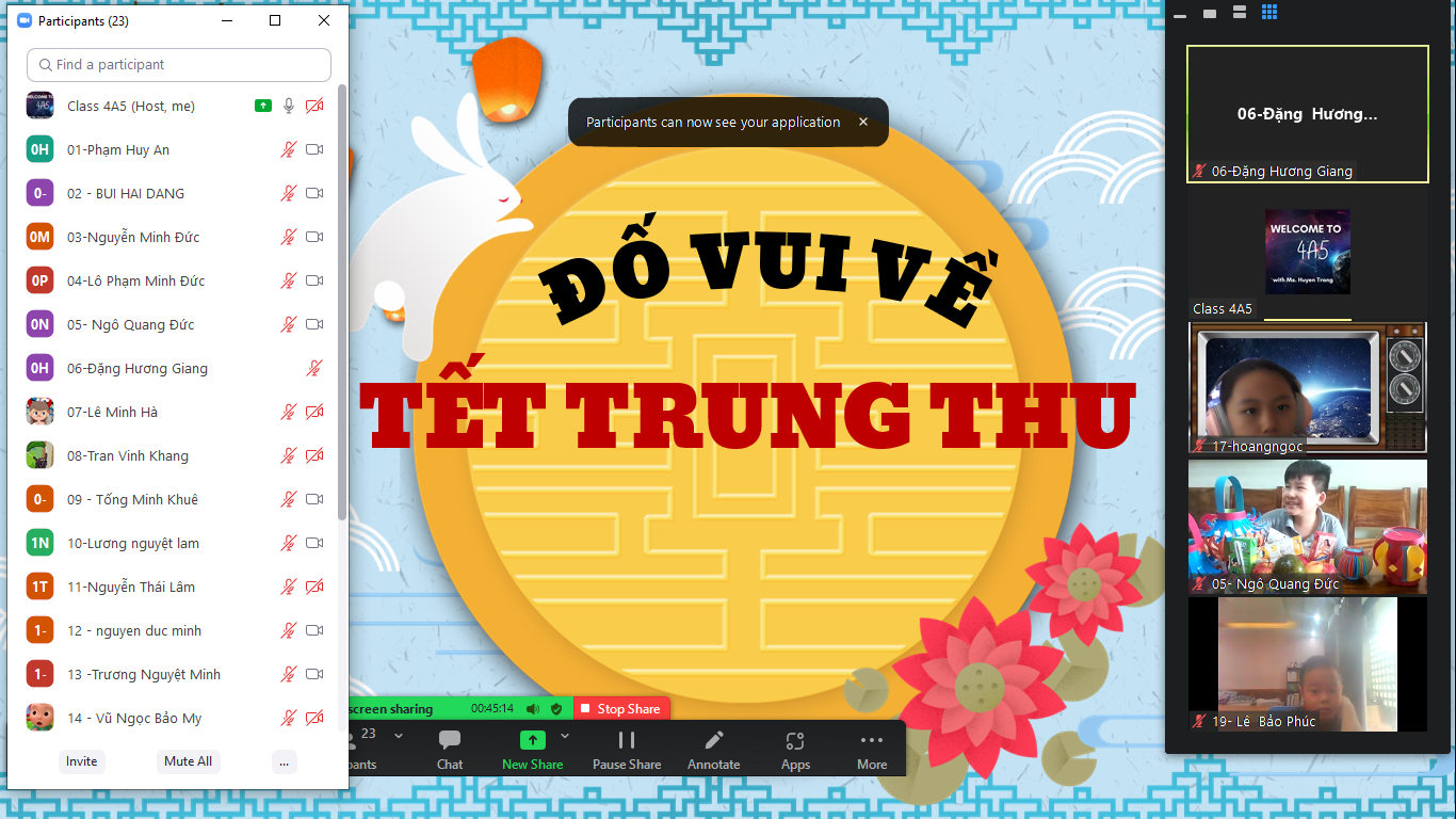 Các hoạt động đều được các bậc phụ hunh ủng hộ, các con học sinh hưởng ứng tích cực và đầy sáng tạo. Ước mơ của các em được thể hiện trên chính sản phẩm mình tạo ra. Thông qua các hoạt động trải nghiệm, các em hiểu được ý nghĩa của Tết Trung thu, biết yêu thương, chia sẻ và thể hiện được khả năng sáng tạo cũng như học hỏi thêm nhiều điều bổ ích.