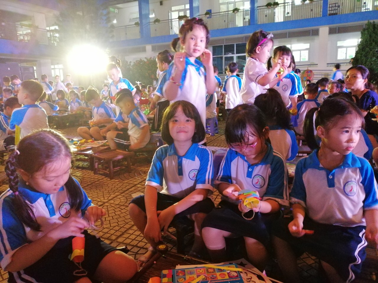 Trung thu vội đến sau khai giảng khoảng ba tuần làm cho các bạn học sinh lớp Một nói riêng và các lớp học sinh nói chung vô cùng thích thú. Biết là vậy nên các thầy cô giáo đã kịp cất đi cái rộn ràng trong lòng, xếp lại cái xốn xang khi thu về để bắt tay vào chuẩn bị trung thu cho các con. Đèn lồng cá chép, đèn ông sao… được trang trí khắp sân trường, trong lớp học. Các nguyên liệu cho học sinh trải nghiệm làm tranh đĩa, xâu vòng, làm quạt giấy, tranh cạo ma thuật… được bàn tay nghệ nhân của các thầy cô chuẩn bị cho các con. Từng cái khay nhỏ xíu đừng các hạt vòng, từng hộp keo dán được quấy dẻo… đều được chuẩn bị tỉ mỉ đến từng chi tiết. Thế là đủ cho các con học sinh vốn say sưa trải nghiệm.