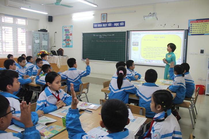Cùng chung mục đích tốt đẹp đó, tham dự Hội thi, cô giáo Nguyễn Thị Thanh Vân- lớp 5A2 đã thực hiện hai tiết dạy: tiết Lịch sử và tiết Toán vào ngày 15 tháng 12 năm 2016. Các em học sinh đã có một tiết học Lịch sử vô cùng thú vị, được sống trong không khí hào hùng của những năm tháng cao trào kháng chiến chống Pháp những năm 1950. Với 3 năm được học tập theo mô hình VNEN, học sinh 5A2 thể hiện sự tự tin, tham gia hoạt động nhóm nhuần nhuyễn. Việc điều chỉnh nội dung tài liệu, sử dụng sáng tạo các hiệu ứng của bảng tương tác thông minh, sử dụng bản đồ tư duy nhằm mục đích khái quát kiến thức đã góp phần nâng cao tính tự học cho các em học sinh. Tiết dạy được Ban giám kháo đánh giá cao bởi sự tương tác nhẹ nhàng giữa cô và trò, lượng kiến thức đảm bảo trọng tâm, vừa sức; không khí lớp học sôi nổi, tự nhiên. Bên cạnh đó tiết học cũng đã ứng dụng hợp lí và sáng tạo CNTT , những tư liệu được cô và trò sưu tầm, sử dụng rất hiệu quả trong tiết học, qua đó học sinh rất hào hứng, tích cực tham gia hoạt động và chiếm lĩnh kiến thức.