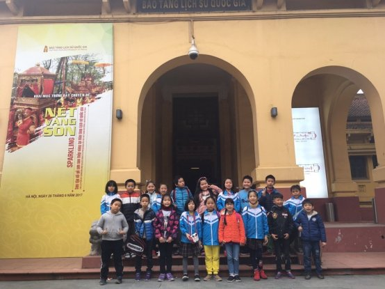 Địa điểm tiếp theo của chuyến đi là Bảo tàng lịch sử Việt Nam. Đến đây, các em học sinh khối Ba tiếp tục được tham quan những hiện vật phản ánh các nền văn hóa, lịch sử dựng nước và giữ nước của người Việt Nam từ thuở ban đầu khai sáng đến ngày ra đời nước Việt Nam Dân chủ Cộng hòa. Các em được cô, chú hướng dẫn viên giới thiệu tỉ mỉ, chi tiết các hiện vật trưng bày nơi đây như Trống đồng Đông Sơn, các sản phẩm gốm Bát Tràng, tượng thần Shiva, cọc gỗ trong trận Bạch Đằng,… Các bạn học sinh luôn chú ý lắng nghe, hăng say theo dõi, ghi chép tỉ mỉ. Một số em còn vận dụng những kiến thức đã học để trao đổi những thắc mắc của mình với các cô chú trong bảo tàng.