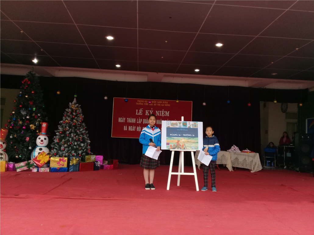 Qua lời giới thiệu truyền cảm, mạch lạc của hai bạn: Vũ Đức Nam- học sinh lớp 3A3 và bạn Bùi Phương Minh- học sinh lớp 5A3, hình ảnh và nội dung cuốn sách “ Cùng em tìm hiểu Hoàng Sa- Trường Sa” thêm sống động và gần gũi với rất nhiều bạn đọc. Cuốn sách được nhóm tác giả: Nguyễn Như Mai, Nguyễn Huy Thắng, Nguyễn Quốc Tín biên soạn. Sách dày 157 trang, được in trên khổ 20,5 x 18, 5 cm; do nhà xuất bản Kim Đồng ấn hành năm 2014.