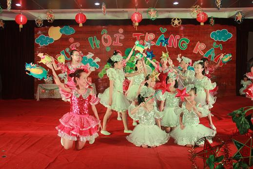 Ngay từ cuối giờ chiều đã diễn ra màn thi bày mâm ngũ quả. Nguyên liệu nhà trường cung cấp chính là đề thi Ban tổ chức dành cho mỗi lớp để thể hiện sự khéo léo của mình. Do các con còn nhỏ tuổi, chưa được thành thạo với việc tạo hình cho một mâm ngũ quả trông trăng, nên trong phần thi này các bố mẹ và cô giáo sẽ trợ giúp các con. Với các lớp lớn hơn, mỗi đội sẽ được 5 phụ huynh vào giúp đỡ; còn các em lớp 1, lớp 2 nhỏ xíu thì sẽ được tới 6 phụ huynh vào trợ giúp. Luật lệ của cuộc thi được nhà trường thông báo rất rõ ràng: đội nào có quá số phụ huynh giúp sức thì coi như phạm luật và mâm ngũ quả đó sẽ không được chấm điểm! Chà, thật là một điều khoản nghiêm khắc nhưng mỗi cuộc thi đều cần có những quy định của nó. Chính vì vậy, thể lệ cuộc thi càng nghiêm ngặt thì giải đạt được càng vinh dự. Cho nên, ở cuộc thi này, lớp nào đoạt giải cao nhất chắc chắn lớp ấy khéo léo và đảm đang nhất trường mình rồi!