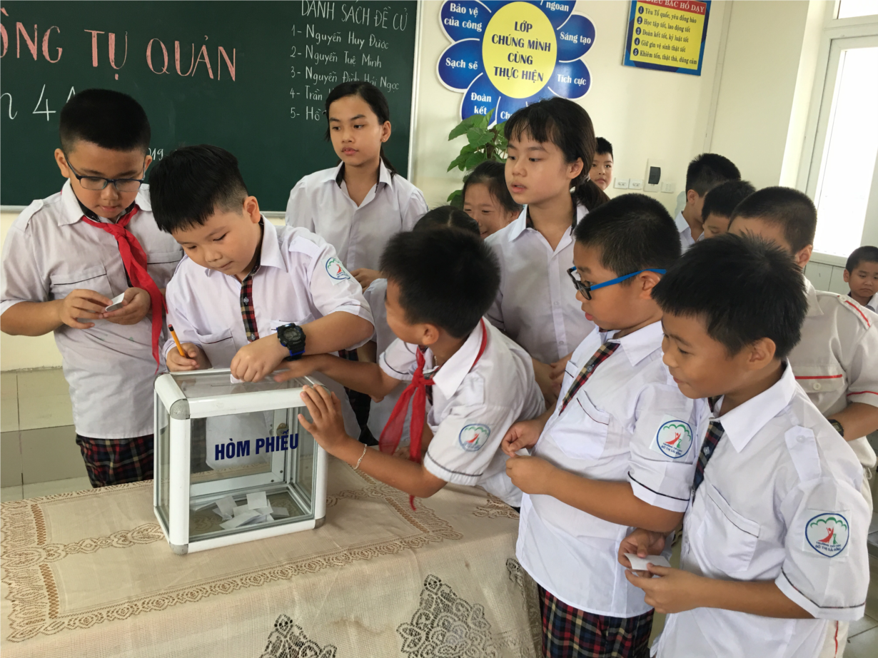 Hình ảnh: Học sinh lớp 4A3 hào hứng tham gia bầu cử