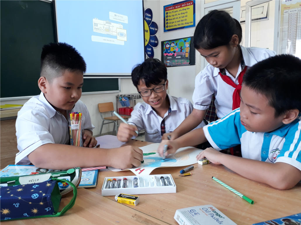 Hình ảnh: Học sinh hào hứng vẽ tranh theo nhóm