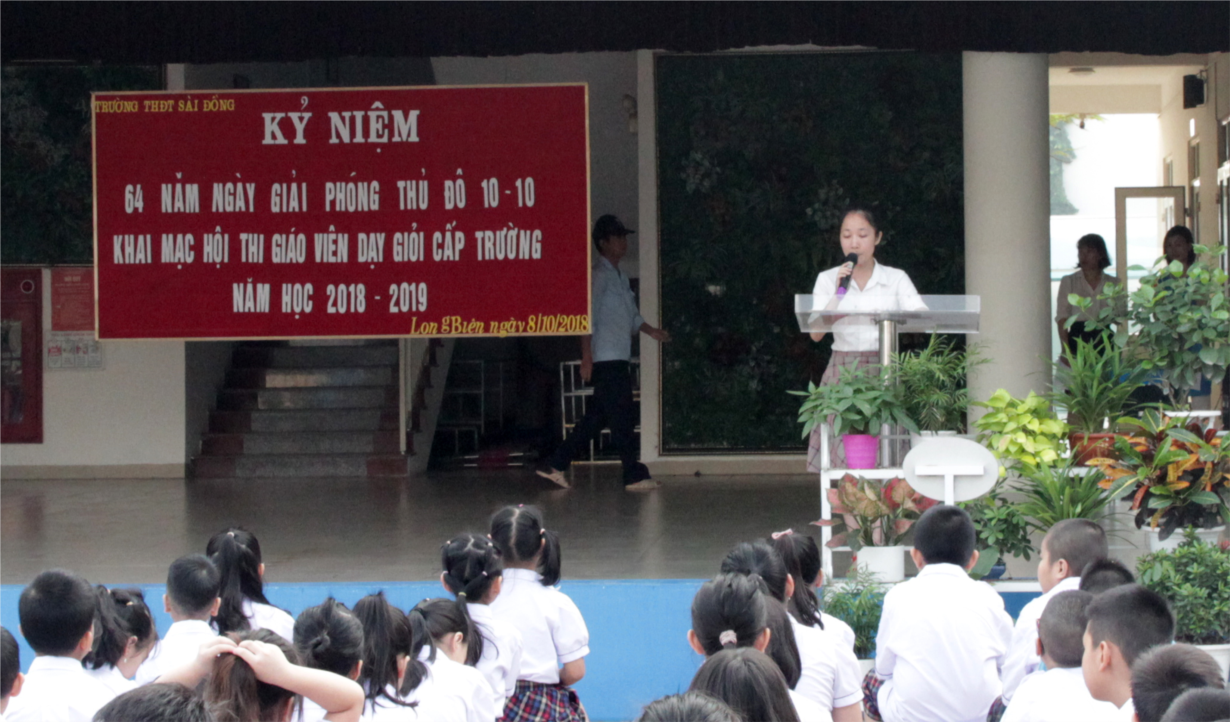 Thực hiện kế hoạch năm học 2018 - 2019, sáng ngày 8/10/2018, trường Tiểu học Đô thị Sài Đồng long trọng tổ chức lễ khai mạc Hội thi “Giáo viên dạy giỏi cấp trường” với sự tham gia đông đủ của cán bộ, giáo viên, nhân viên và học sinh trong toàn trường.