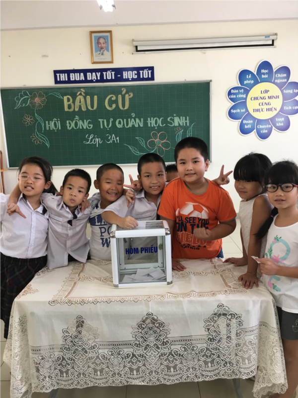 Sau phần diễn thuyết là lúc các em học sinh được viết tên những bạn mình tin tưởng và ủng hộ vào phiếu bầu. Các em được tự mình bỏ lá phiếu đầu tiên minh bạch, công khai trước sự chứng kiến của cô giáo và các bạn trong lớp.
