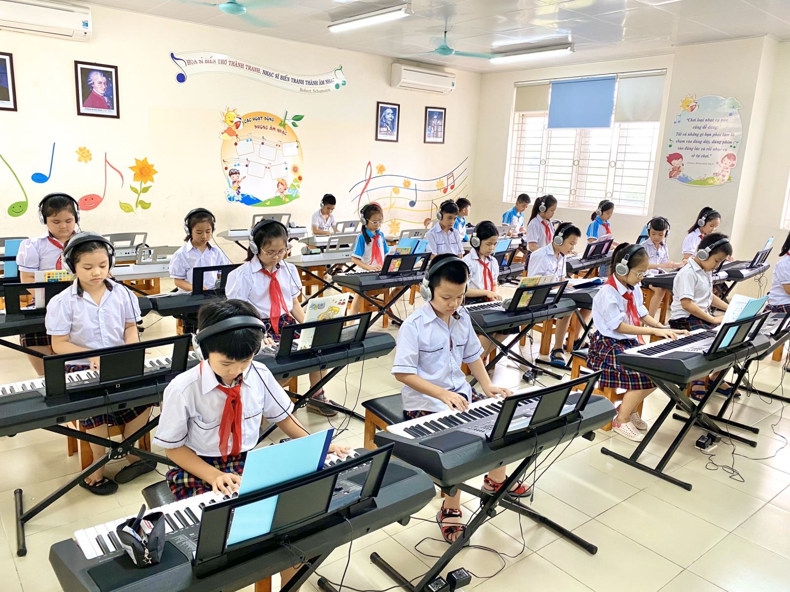 Hì !important;nh ảnh: Học sinh hào hứng trong tiết học nhạc cụ.