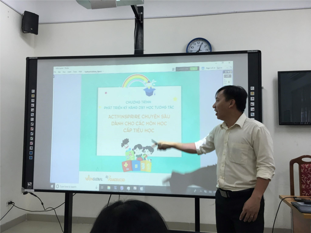 Ngày 03/8, giáo viên được hướng dẫn các cách vận dụng để thiết kế những bài giảng phong phú về nội dung và hình thức với sự kết hợp của nhiều kĩ năng phức tạp hơn. Bài giảng có tính thẩm mỹ, ứng dụng cao tạo sự hứng thú thu hút sự chú ý và phát triển kỹ năng sáng tạo của học sinh đúng với tiêu chí “Lấy học sinh làm trung tâm” giúp các em được thực hành nhiều hơn trên bảng tương tác.