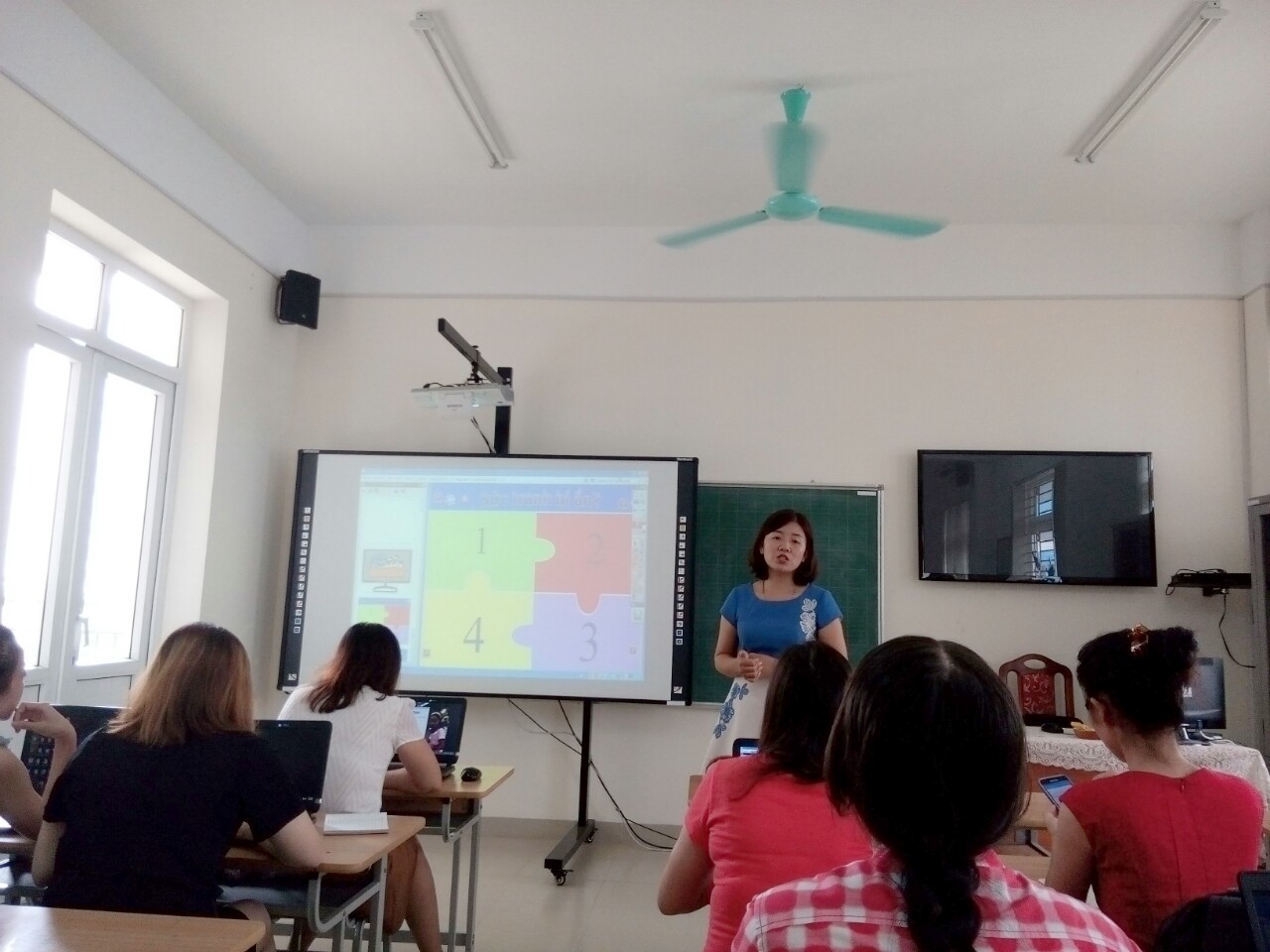 Sau lần tập huấn kĩ năng sử dụng bảng tương tác ở những năm học trước, để chuẩn bị tốt cho năm học 2017- 2018, giáo viên nhà trường tiếp tục bổ sung thêm những kĩ năng mới trong dạy học. Với phương châm: tự học, tự trau dồi kiến thức, người biết nhiều hướng dẫn cho người biết ít, các giáo viên nhà trường say sưa với những thao tác, tính năng ứng dụng mới của bảng tương tác thông minh như: tạo kính lúp nhìn xuyên qua một vật, xây dựng các gói bài tập, trò chơi violet, tạo trò chơi ô chữ, ô cửa bí mật, ...