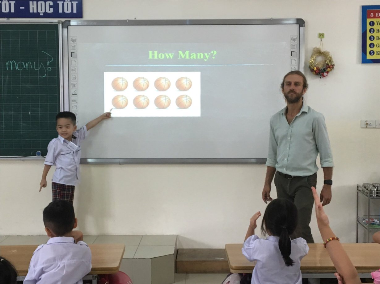 Hình ảnh: Thầy Tim cùng học sinh trong một tiết học