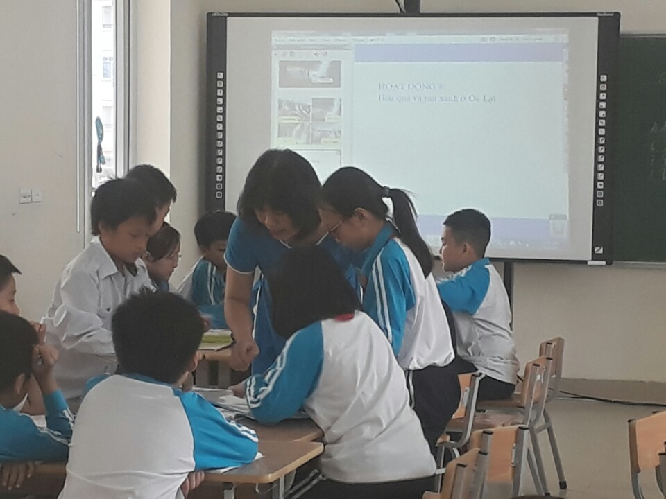 Hình ảnh: Cô giáo Cao Thu Hà cùng học sinh trong tiết học