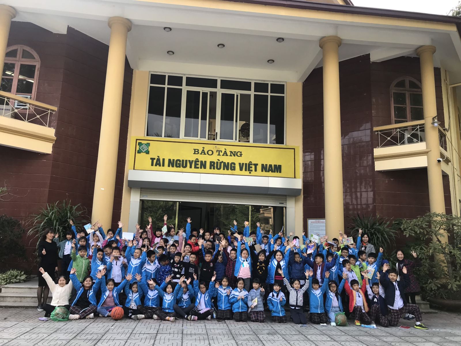 !important; Trong buổi sáng thứ hai (2/12/2019) 101 học sinh Khối 3 Trường Tiểu học Đô thị Sài Đồng đã đến với Bảo tàng Tài nguyên Rừng Việt Nam ( huyện Thanh Trì, Hà Nội) để thực hiện hoạt động trải nghiệm sáng tạo với chủ đề “Đa dạng và bảo vệ đa dạng các loài sinh vật”. Các em đã tham gia nhiều hoạt động trong đó có: Tham quan khu trưng bày mẫu vật trong nhà bảo tàng - tìm hiểu sự đa dạng của các nhóm sinh vật tại bảo tàng. Bảo tàng đã và đang lưu giữ Bộ mẫu vật về tài nguyên rừng gồm: Động vật (với đa dạng các lớp: chim, thú, bò sát, lưỡng cư,…), thực vật và côn trùng. Tham quan Vườn thực vật - tìm hiểu về thực vật ưa sáng, ưa bóng; khám phá khu hầm trú ẩn trong lòng đất; Chụp ảnh, sưu tầm tư liệụ về rừng thường xanh mưa ẩm nhiệt đới.... Đó chính là khu vườn thực vật về tài nguyên sống rộng trên 3ha được gắn liền với Nhà trưng bày của Bảo tàng. Khu vườn có đầy đủ các loài thực vật đặc trưng cho các kiểu rừng điển hình của nước ta như: Rừng thường xanh mưa ẩm nhiệt đới (Sao đen, Táu, Chò chỉ...). Rừng trên núi đá vôi (Lim, Nghiến, Hoàng đàn, Kim giao...). Rừng khộp (Giáng hương, gụ mật...). Rừng ngập mặn (Bần chua). Bên cạnh những tài nguyên quý giá đó, khu vườn của Bảo tàng còn là nơi duy nhất ở Hà Nội lưu giữ một số chứng tích để lại từ những năm chống Mỹ. Đó là các hầm trú ẩn và hố bom – dấu ấn của một thời chiến tranh khốc liệt 12 ngày đêm tại Thủ đô Hà Nội.