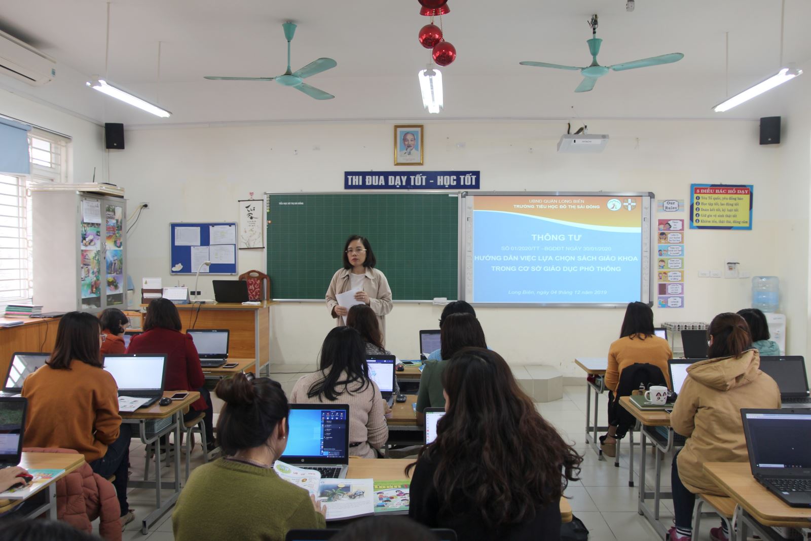 Một vài hình ảnh giáo viên trường tiểu học ĐT Sài Đồng trong buổi họp triển khai chọn sách giáo khoa: