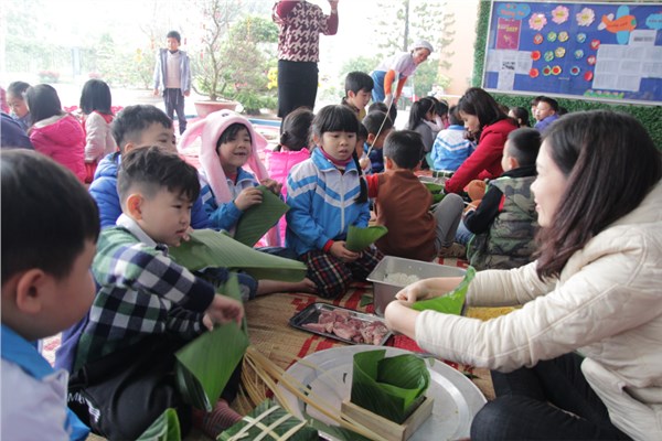 Tập ảnh : Hoạt động trải nghiệm gói bánh chưng Tết