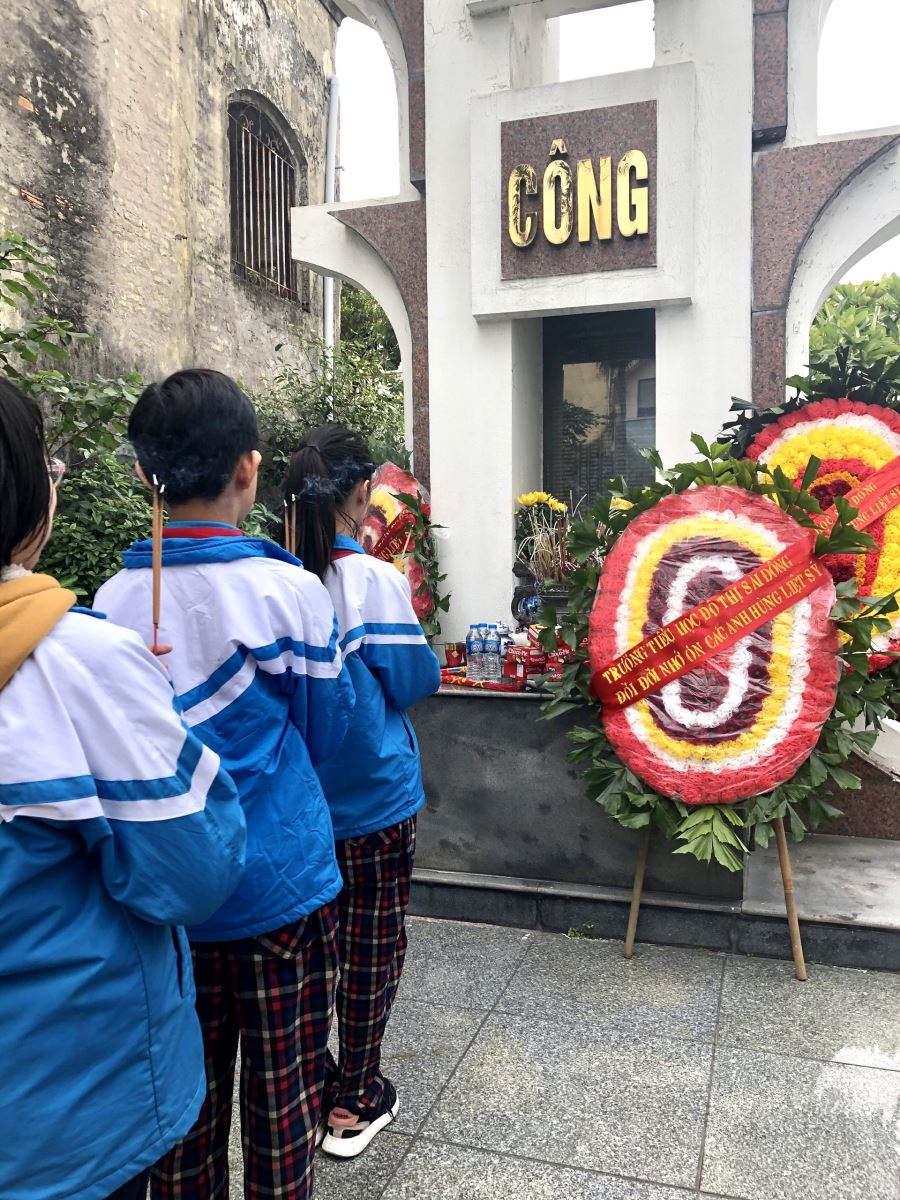 !important; Cô giáo Nguyễn Thị Thuỳ Trang – CTCĐ, Trần Phương Oanh - Giáo viên Tổng phụ trách Đội thay mặt thầy vào trò nhà trường dâng nén nhang thơm lên các anh hùng liệt sĩ.