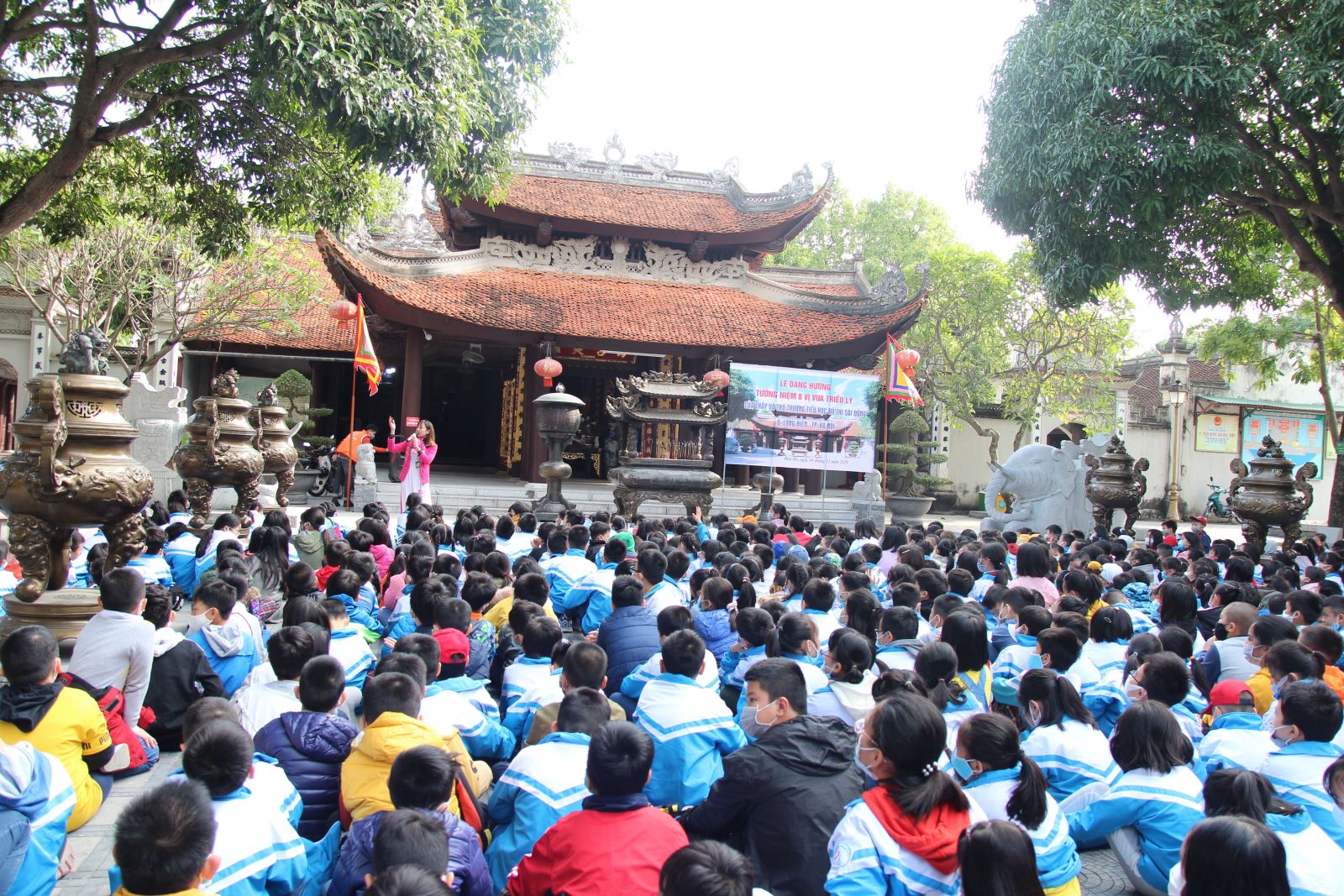 Hình ảnh: Học sinh lắng nghe lịch sử Đền Đô