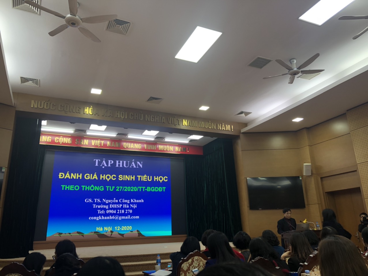 !important; Tại Hội nghị Giáo sư, tiến sĩ Nguyễn Công Khanh, Trường Đại học sư phạm Hà Nội đã Tập huấn cho cán bộ giáo viên các trượng tiểu học trong cụm 3 về Lộ trình thực hiện, Mục đích đánh giá, Nội dung đánh giá, Tổ chức đánh giá, Phương thức đánh giá, Phân biệt giữa đánh giá thương xuyên và đánh giá định kì, Một số nguyên tắc trong đánh giá, Giáo viên có thể làm gì và cần làm gì, Các mức độ của bài kiểm tra định kì, Đánh giá Kết quả giáo dục cuối năm.