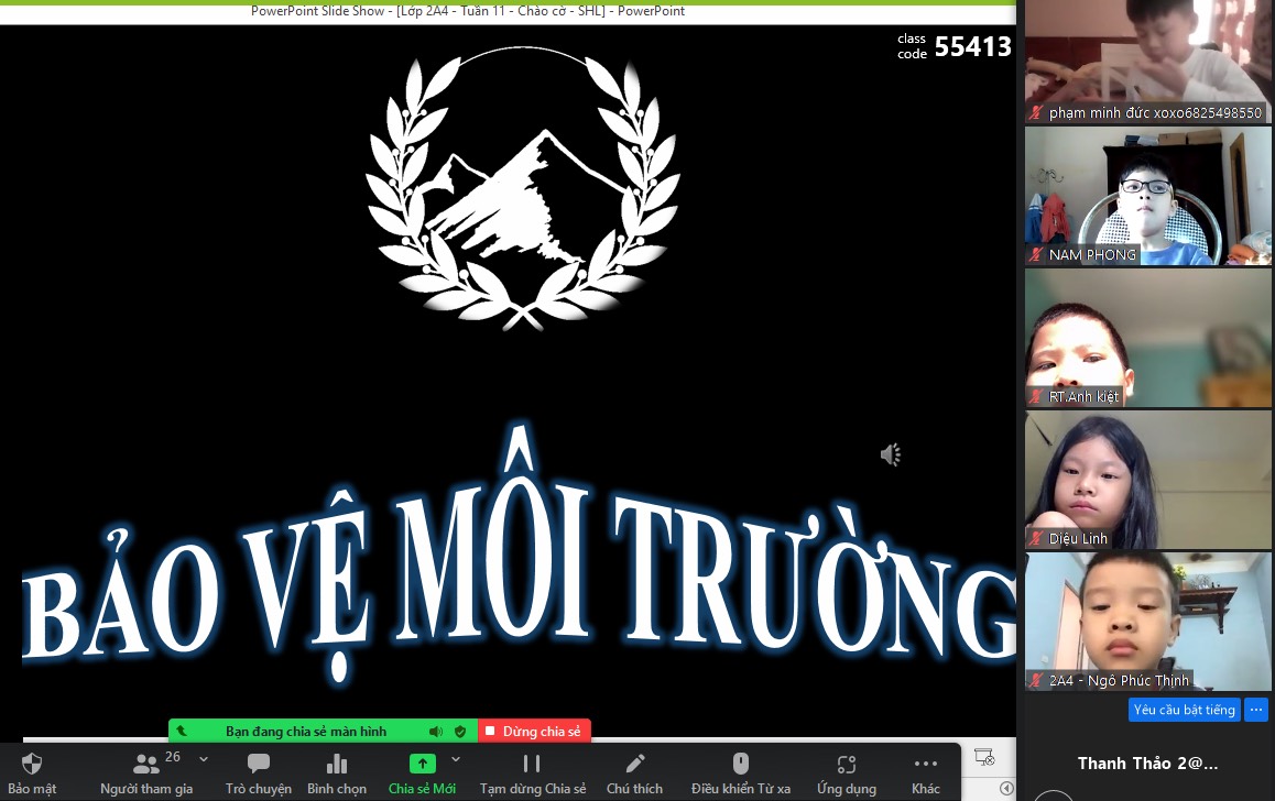 Ban thiếu nhi nhà trường đã xây dựng video tuyên truyền hấp dẫn về thông tin, giàu hình ảnh, đem lại cho thiếu nhi, đội viên những kiến thức cập nhật nhất về tác hại của ô nhiễm rác thải nhựa. Các em được tham gia trò chơi Rung chuông vàng chủ đề về Bảo vệ môi trường bằng phần mềm quizzi, powerpoint.