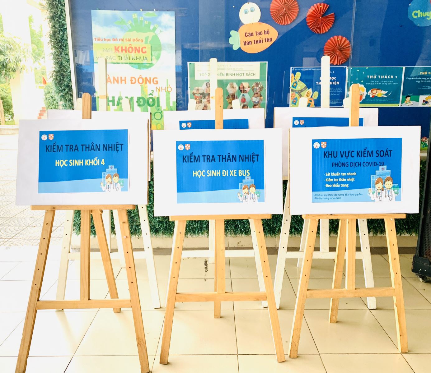 Hình ảnh: Biển chỉ dẫn dành cho HS phòng chống dịch Covid – 19