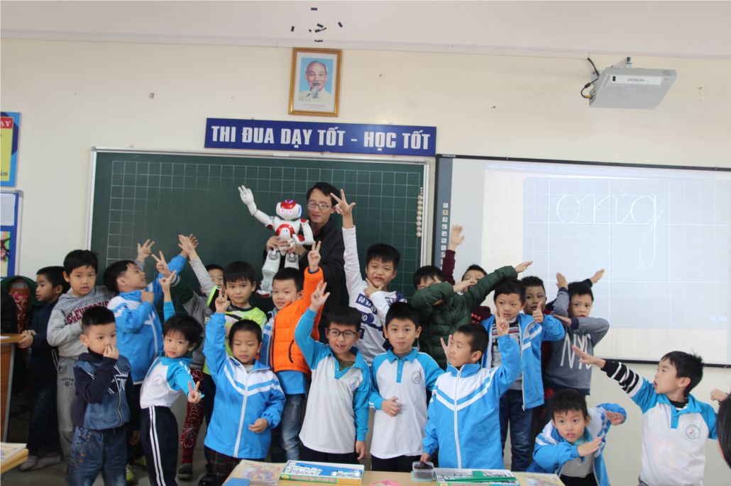 Tại chương trì !important;nh, thầy giáo – robot NAO đã cùng các bạn nhỏ làm quen và tìm hiểu sở thích của nhau. Với tất cả sự tò mò và trí tưởng tượng về robot các bạn học sinh vô cùng thích thú trước những câu trả lời và các hoạt động của thầy giáo robot.
